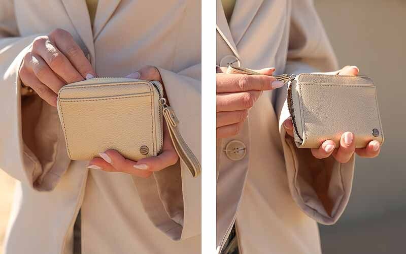 - Slimme opberger – Open de Delphi en je vindt een harmonica-indeling met plek voor briefgeld, vier pasjes en een apart ritsvak voor je muntgeld. Want ja, los kleingeld in je tas is een no-go.