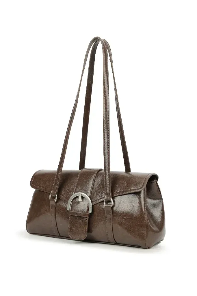 Elegante schoudertas met zilverkleurige gesp, bruin