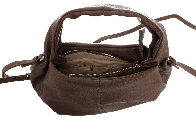 De soepele, 'slouchy' vorm geeft de tas een relaxte, moderne uitstraling. Het hoofdvak sluit veilig met een rits en is ruim genoeg voor al je dagelijkse benodigdheden. Binnenin helpt een extra ritsvakje je om je kleinste essentials, zoals je pasjes of sleutels, veilig en apart op te bergen.