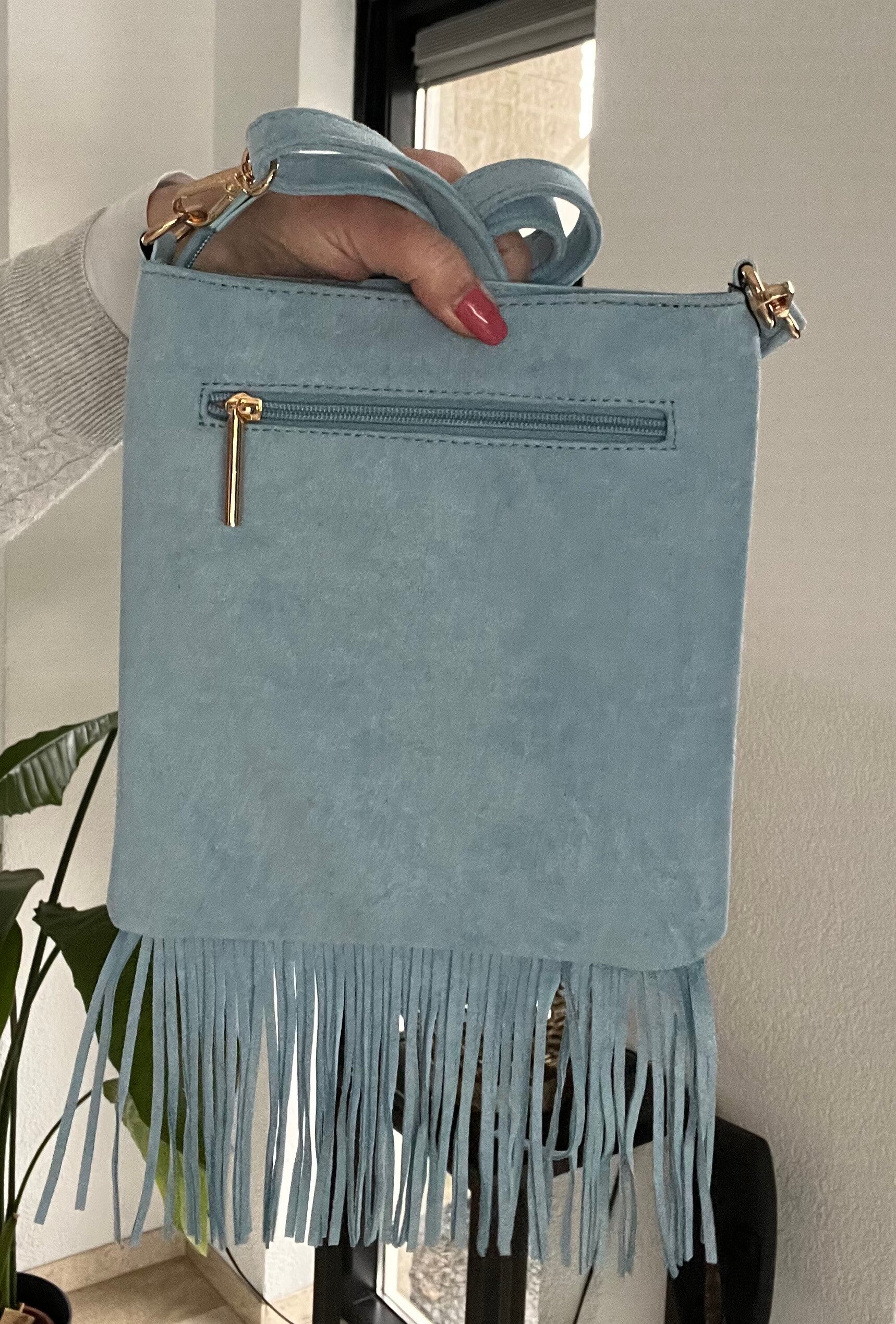 Deze trendy schoudertas met suède look is een echte eyecatcher. De speelse franjes en goudkleurige studs geven de tas een bohemian-chique uitstraling, perfect voor dagelijks gebruik én festivals. Dankzij het lichte gewicht en de praktische indeling neem je al je essentials moeiteloos mee.