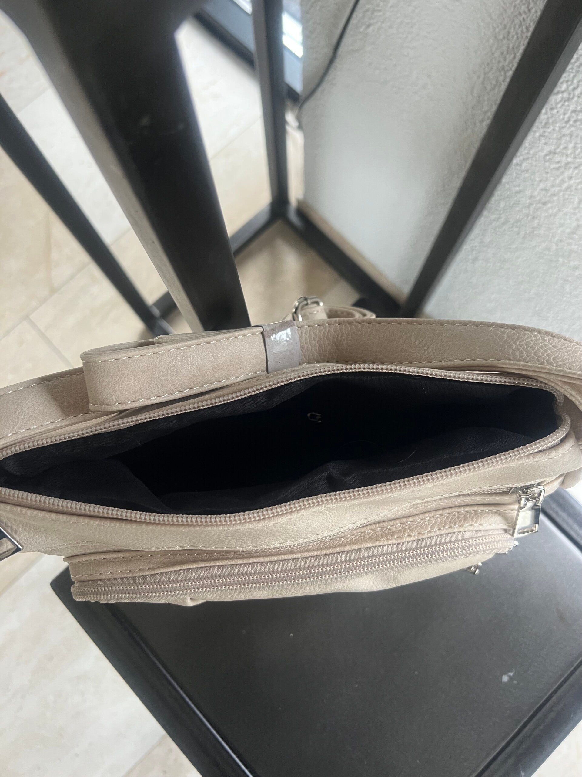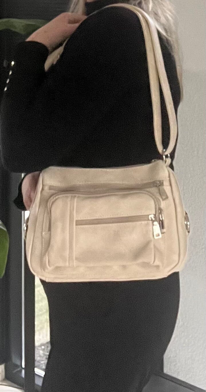 Beige schoudertas met verschillende vakjes