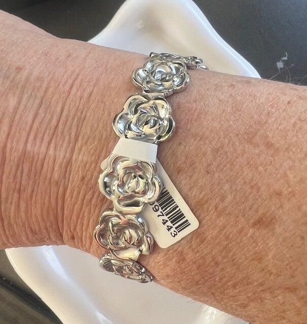 Manchetarmband bloem zilver