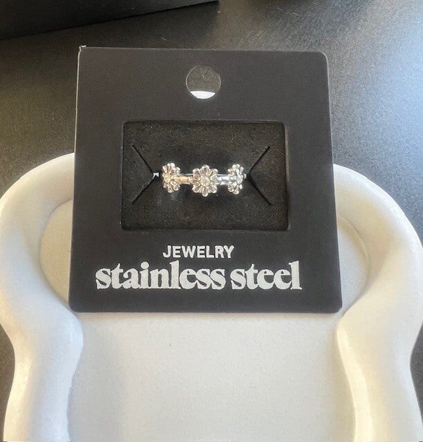 RVS ring bloemmotief Zilver