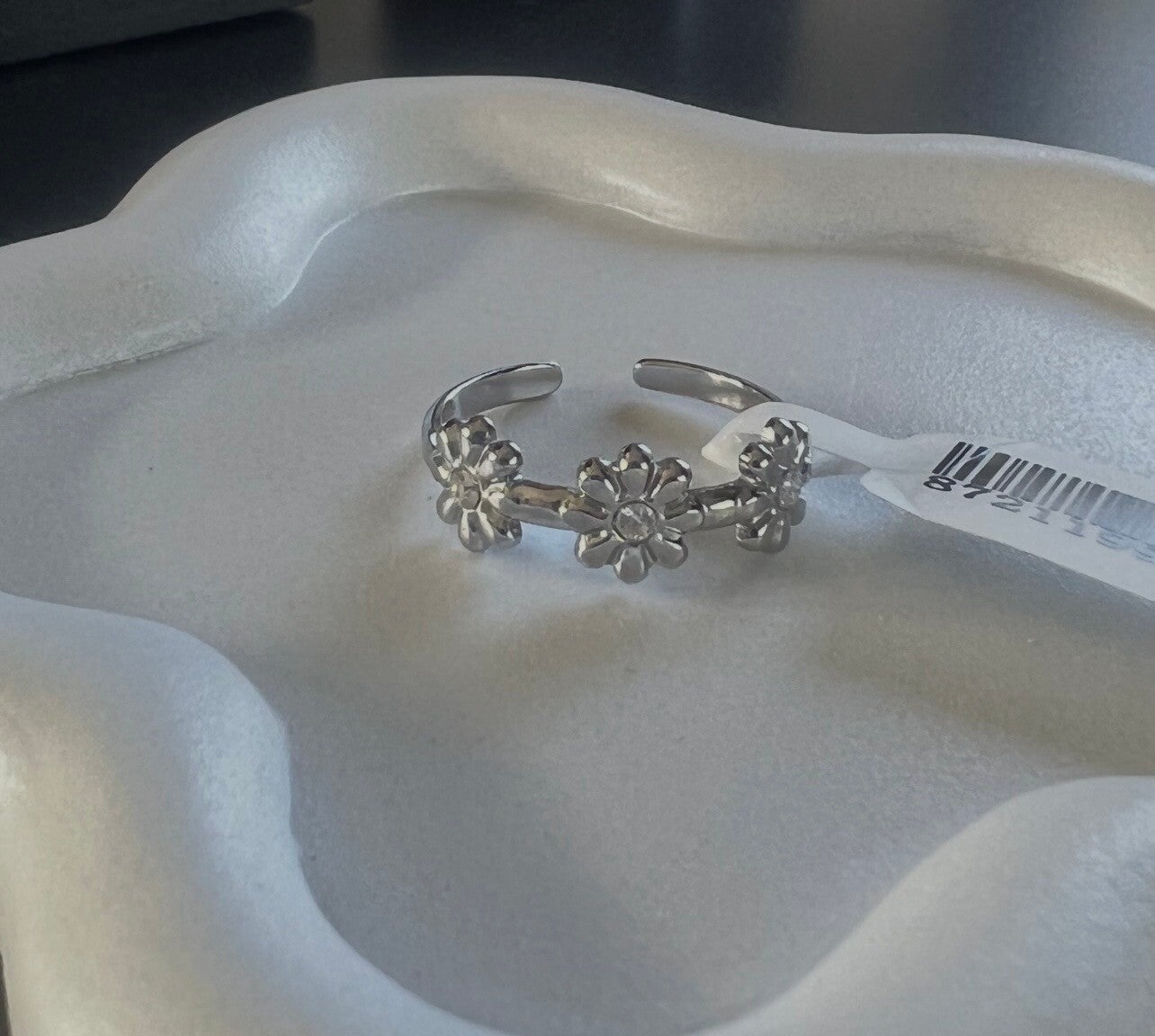 Deze minimalistische ring met bloemetjes is een subtiel en stijlvol sieraad dat perfect past bij elke outfit. Het verfijnde bloemmotief geeft een speelse, vrouwelijke touch zonder te overheersen, waardoor de ring ideaal is voor dagelijks gebruik of als aanvulling op andere sieraden.