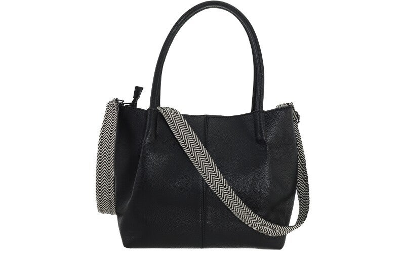 Draag de tas zoals jij wilt. Kies voor de klassieke vaste handvatten of ga voor een opvallende look met de brede, afneembare schouderband met trendy zigzag-patroon.