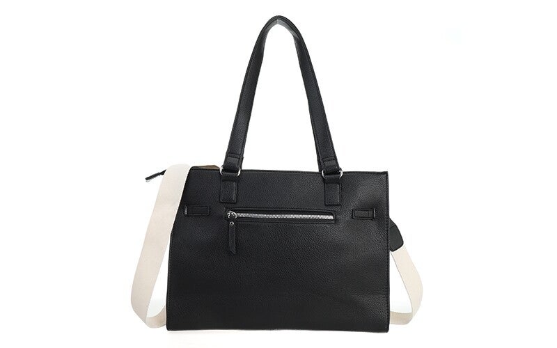 Ontdek de Messina handtas in de kleur zwart: een stijlvolle en ruime tas die chique design moeiteloos combineert met een sportieve touch. Gemaakt van hoogwaardig PU materiaal (veganistisch leer), biedt deze tas zowel luxe uitstraling als praktisch gebruiksgemak. Ideaal voor dagelijks gebruik, werk of een dagje uit wanneer je alles overzichtelijk bij de hand wilt hebben.